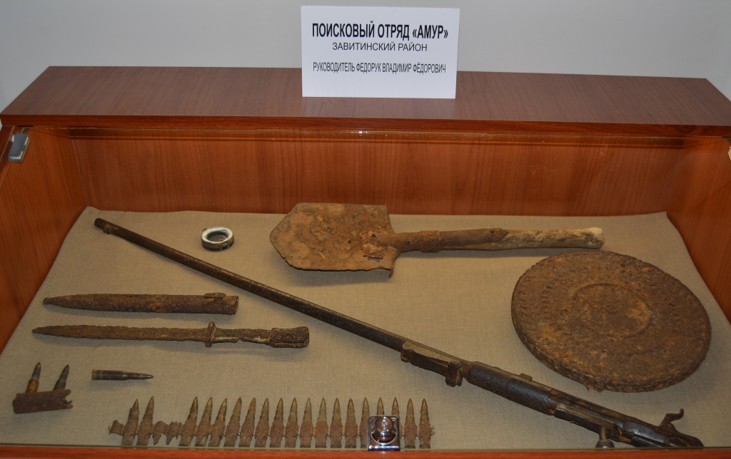 Торжественное мероприятие начнётся с открытия выставки о деятельности историко-поискового отряда «Амур» (с. Куприяновка Завитинского района Амурской области), который на протяжении многих лет ведёт большую работу по поиску воинов, павших при защите Отечества. Командир отряда - Федорук Владимир Федорович, заместитель руководителя Амурского регионального отделения Общероссийского общественного движения «Поисковое движение России». «Амур» входит в состав Сводного поискового отряда Амурской области, проводит большую военно-патриотическую работу. Он участвовал в 6 поисковых экспедициях. Регионы проведения экспедиций – Смоленская и Псковская области. На выставке в музее представлены предметы снаряжения, экипировки и солдатского быта воинов РККА в годы Великой Отечественной войны, найденные во время поисковых экспедиций на территории Смоленской области.